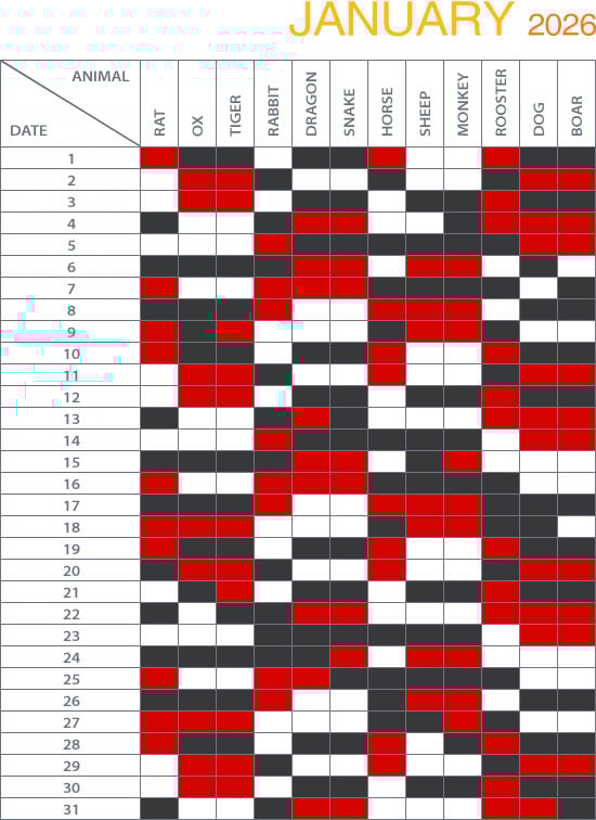 Click here for list to check what animal sign you were born under. |